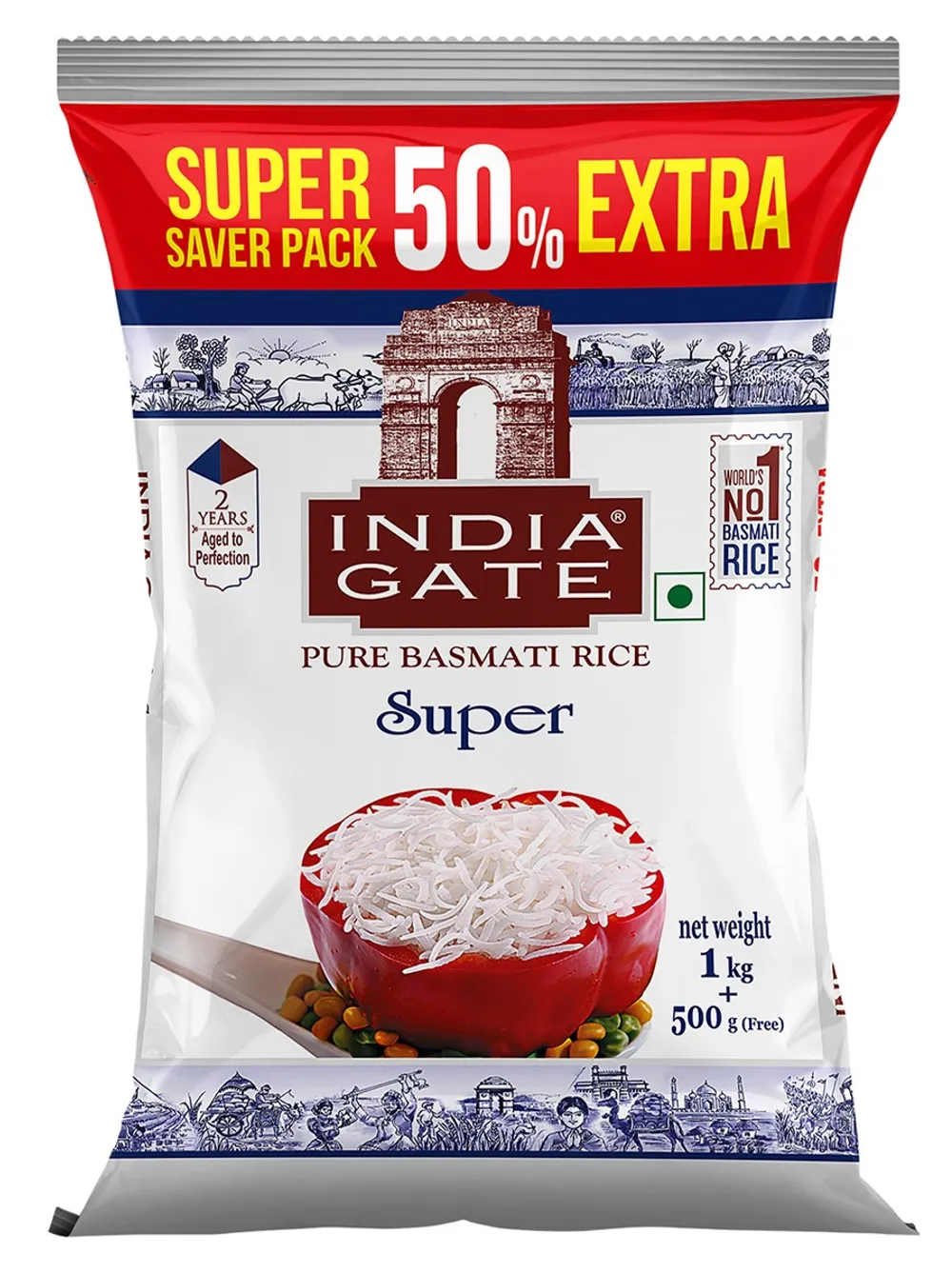 | India Gate Super Basmati Rice with 500g extra long grain | India Gate Super Basmati Rice with 500g extra long grain |