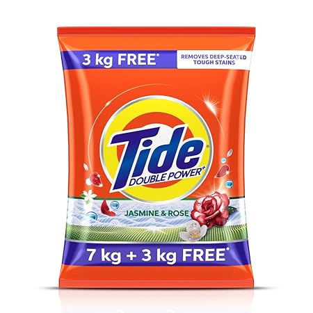 | Tide Plus Detergent Washing Powder - 7kg+3kg free | Jasmine & Rose Fragrance | Removes deep-seated Oil, Gravy, Tea Stains | 10kg, Pack of 1 | Tide Plus Detergent Washing Powder - 7kg+3kg free | Jasmine & Rose Fragrance | Removes deep-seated Oil, Gravy, Tea Stains | 10kg, Pack of 1 |